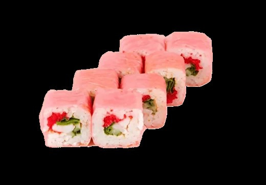 (рис, соевая бумага, сливочный сыр, тобико, огурец, креветка, салат) 230 гр., 671 Ккал
